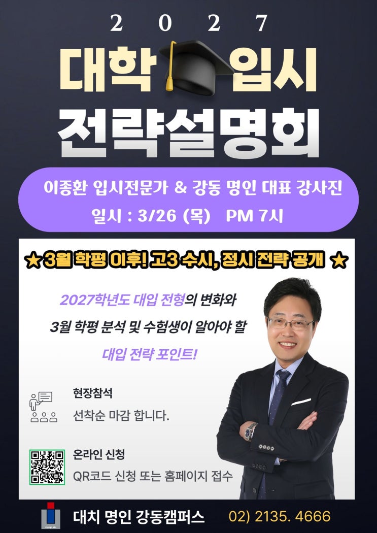 [대치명인 강동캠퍼스] ★ 3모 분석 및 2027 대입 전략 설명회 ★