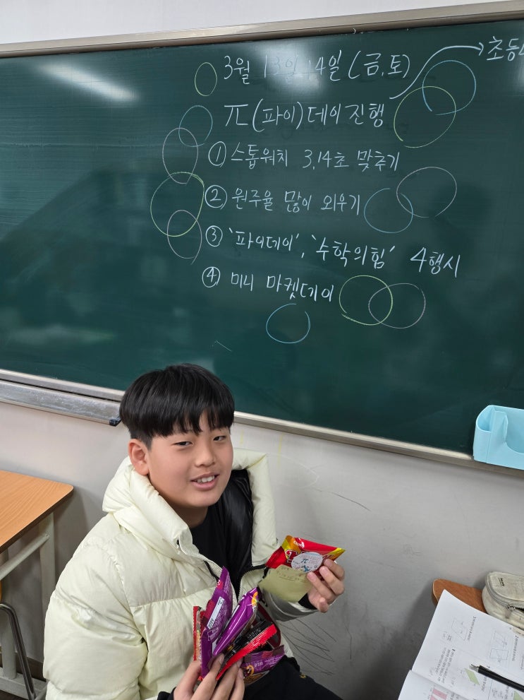 안녕하세요, 학원 선호도 1위 '마음에 기술을 더하다' 초격차 수학의힘 수완 캠퍼스입니다. 지난 3월 13일과 14일, 저희 수완지구 수학학원에서는 아이들과 함께 특별한 파이데이(π Day) 행사를 진행했습니다. 단순한 문제풀이를 넘어 아이들이 수학을 흥미롭게 느낄 수 있도록 다양한 활동을 준비하고 있습니다. 이번 파이데이 역시 그런 취지에서 기획된 프로그램입니다. 먼저 아이들과 함께 원주율 π의 의미와 유래를 알아보는 시간을 가졌습니다. 어렵게 느껴질 수 있는 수학 개념도 이야기처럼 풀어 설명하니 아이들이 훨씬 집중하며 참여하는 모습이 인상적이었습니다. 또한 학원 내부에서는 작은 미니마켓도 운영했습니다. 그....... <img src="https://blogthumb.pstatic.net/MjAyNjAzMThfNDUg/MDAxNzczODI4NTE5Mzg0.oPoEpHCDbyg2Qz7RJtt9pqQecqc2Sv-9C0H09Rj3DG0g.G2czg-EGNjUBshHAzqZegJ1R7POxNBzw0pXcrqnxmaYg.JPEG/KakaoTalk_20260313_205609493.jpg?type=s3" />