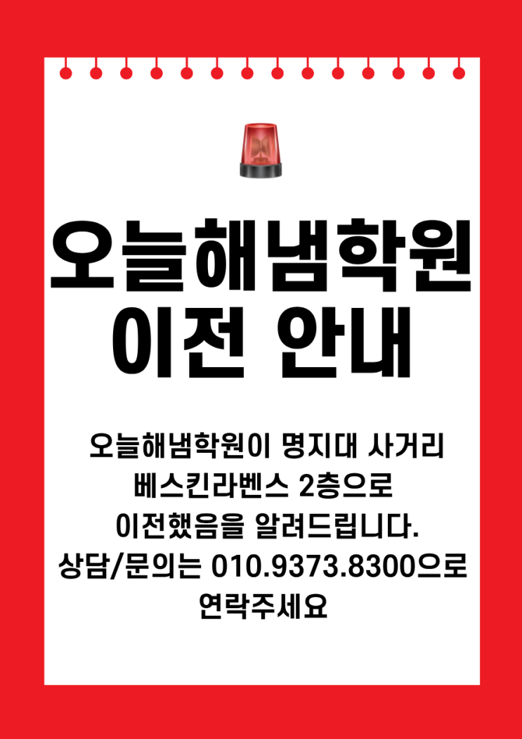 오늘해냄학원 이전 안내