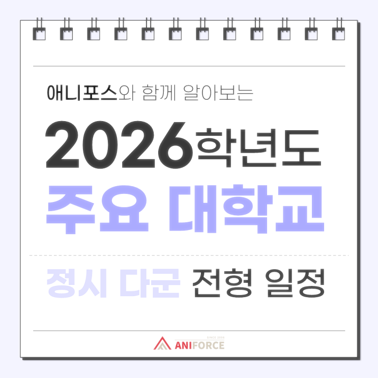 안녕하세요! DREAMS COME TRUE! 꿈이 이루어지는 공간. 울산 애니포스 만화학원입니다! (캐치프라이즈 외치는 시간! 빠샤!) ✊ 곧 2026학년도 정시 나군 실기전형이 마무리되고, 2026학년도 정시 다군의 실기전형 등이 본격적으로 진행됩니다! 2026 정시 다군은 4년제 대학에 해당하는 모집군으로, 애니메이션·웹툰·게임 주요 대학에서 이 시기에 실기전형이 집중적으로 진행된답니다. 오늘은 울산 애니포스가 2026학년도 정시 전형일정부터 정시 다군에서 진행되는 실기전형 종목까지 한눈에 정리해드릴게요! 2026학년도 정시 전형일정 2026학년도 정시 전형 26.01.05(월) ~ 01.28(수) 가군 : 26.01.05(월) ~ 01.12(월) 나....... <img src="https://blogthumb.pstatic.net/MjAyNjAxMTdfMjA0/MDAxNzY4NjIwNTM5Njg5.NcTKEkFkAF7DhS5-RaC1oPCi_Cb-NmIlh5hH9YCZo_Ig.QxJVs6S4XseodHAizcd36jKlGUKWUT8Xtbdw4eKVu6Mg.PNG/2026_%C1%A4%BD%C3_%B4%D9%B1%BA_%C0%FC%C7%FC_%C0%CF%C1%A4_%BE%C8%B3%BB_%281%29.PNG?type=s3" />