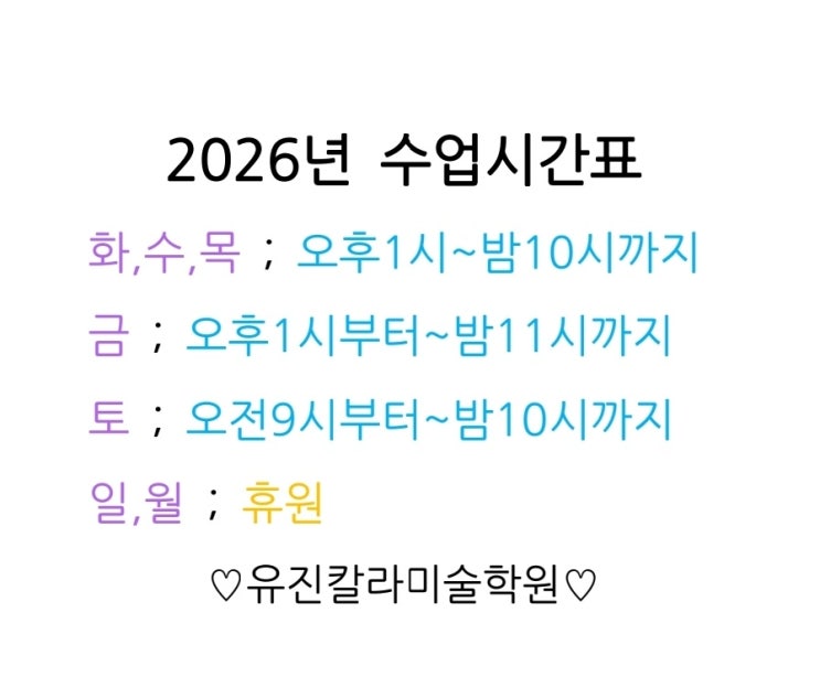 2026년 시간표 /양산예고입시미술학원 양산예중입시미술학원 양산최다합격예중예고전문미술학원 유진칼라미술학원