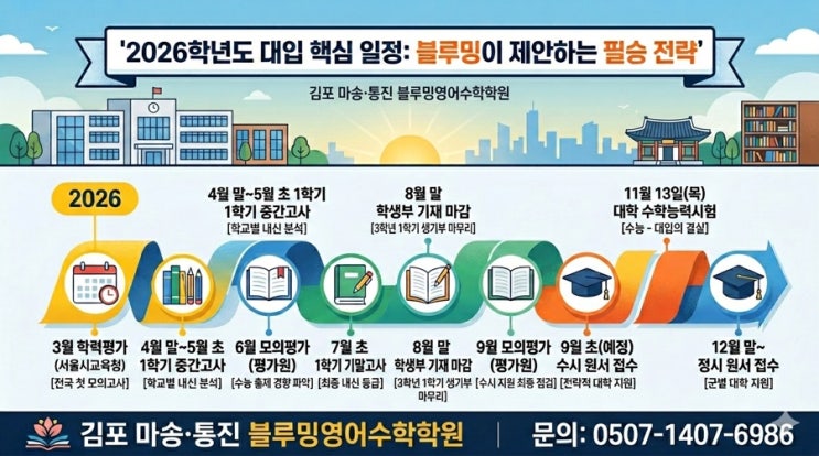 마송 통진 영어수학, 새 학기 '블루밍'할 준비 되었나요? (2026 대입 일정 완전 정복!)