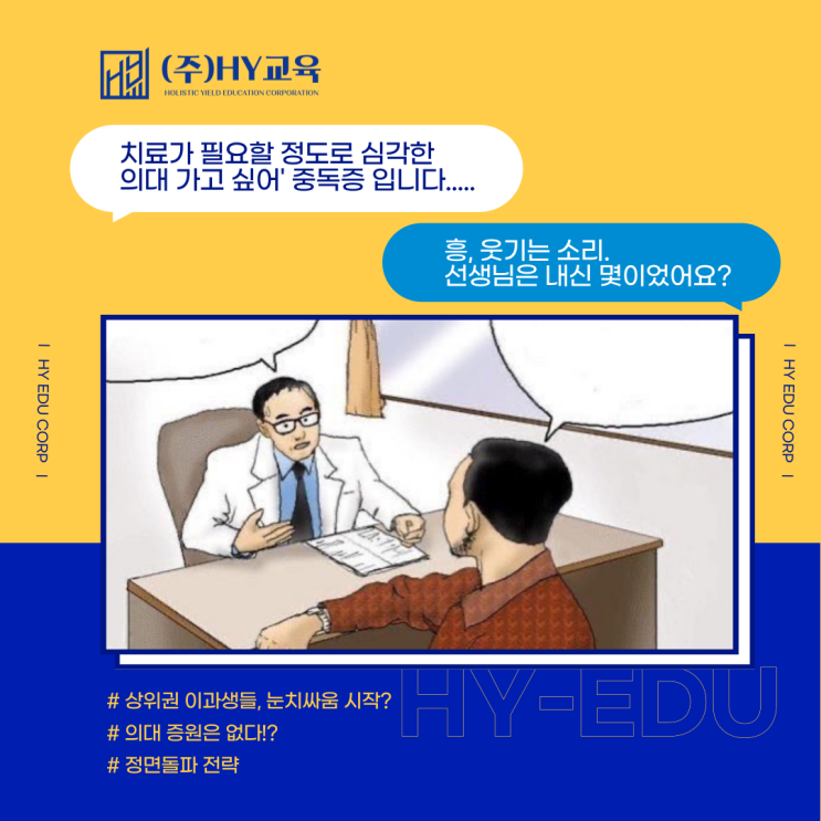 의료계 vs 정부 기싸움 속 상위권 이과생들이 주목해야 할 핵심 데이터 분석 안녕하세요 대한민국 입시의 본질을 데이터로 증명하는 HY교육 입시분석팀입니다. 최근 상위권 이과 입시의 '태풍의 눈'은 단연 의대 정원 문제입니다. 의료계는 교육의 질 저하를 우려하며 모집인원 축소를 강하게 압박하고 있지만, 정부는 "조정은 없다"며 단호한 입장을 고수하고 있습니다. 오늘은 혼란스러운 의대 입시 판도 속에서 우리가 주목해야 할 진짜 숫자들을 분석해 보겠습니다. 2027학년도 의대 정원, 490명 증원 정부는 2027학년도 의과대학 정원을 올해 모집인원(3,058명)보다 490명 늘어난 규모로 확정했습니다. 이는....... <img src="https://blogthumb.pstatic.net/MjAyNjAyMTlfMTU4/MDAxNzcxNTAzMTI4MDI5.w1Aww-DsgmlggOtogxRqY4fvRmIssnxcPUMJi0KuLzog.VxZ_OMiwpyYgaMHy8HGNi66DLnsqz1wTyRvT9kLYbNkg.PNG/%BD%E6%B3%D7%C0%CF-001_%281%29.png?type=s3" />