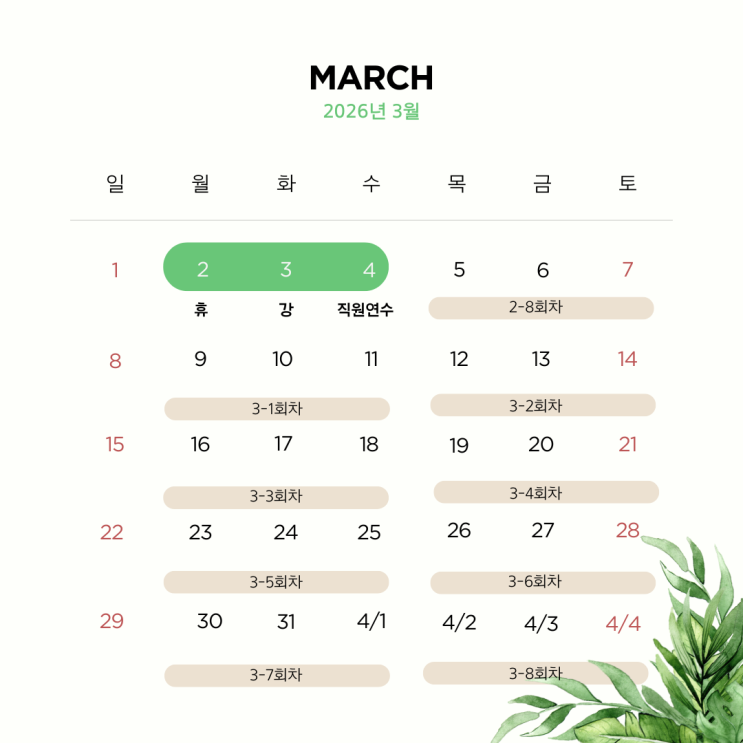 안녕하세요! 송파 영어학원의 자존심, 방이동 영어학원가의 앞선 학원, 베토영어입니다. 2026년 3월 학사일정 안내드립니다. 학사 일정은 클래스 별로 다를 수 있습니다. 일정이 다른 경우 별도로 연락 드리고 있습니다 :) ※3월2일(월)~3월4일(수) 휴강입니다. ■ 송파캠퍼스 카카오톡 채널 : http://pf.kakao.com/_xoNwJn/chat https://tv.naver.com/v/77341206 <img src="https://blogthumb.pstatic.net/MjAyNjAyMjZfMTI3/MDAxNzcyMDg2MjEzOTM0.QgZsYHL0MyxjTStGOk3Y_xy5BbkjQurvIxNRRj61jBIg.7x6dhRQwoZ2T7AojJtiop90oHeCvEnbL-BAx7dAcBQQg.PNG/3%BF%F9%C7%D0%BB%E7%C0%CF%C1%A4.png?type=s3" />