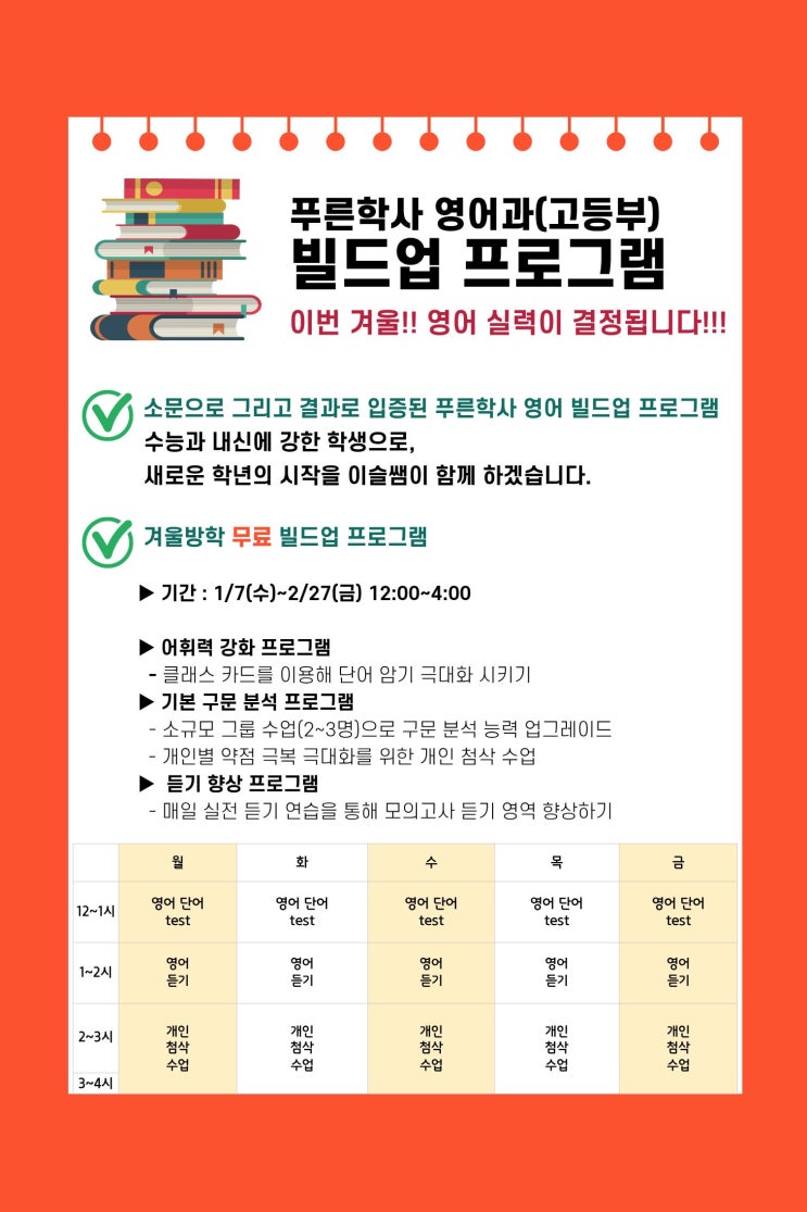 재원생 대상 프로그램입니다. 개인첨삭 및 구문수업이 선생님들이 배치되어 별도 강의 진행합니다. <img src="https://blogthumb.pstatic.net/MjAyNjAxMDlfMTE2/MDAxNzY3ODk4NjI0NTM4.3v-6Ba9FH5ettnr3shrMO-7vTOKgphyWlqBoqw8RCHcg.5kNdO5CMZsjG241syikSIpDE-LiOmJic4zvK17hXg0wg.JPEG/KakaoTalk_20260107_173201610.jpg?type=s3" />