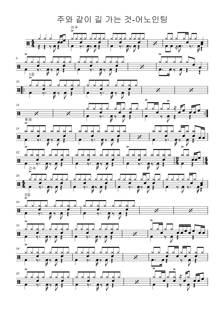 각 줄의 4번째 마디에 주의하세요. *연습하면 큰 어려움 없이 치실수 있도록 취미 드러머분께 맞춰 쉽게 편곡된 악보입니다. 원곡과 똑같은 악보를 원하시는 분은 악보사이트를 참조하세요. #쉬운드럼 #쉬운드럼악보 #어노인팅_드럼 #주와_같이_길_가는_것 #주와_같이_길_가는_것_드럼 <img src="https://blogthumb.pstatic.net/MjAyNjAyMDdfMTgw/MDAxNzcwNDU2MDE0NjI0.ULB_ZtsnJrFra4mHO-L2x2x7uyRdNcVeANEbQWT2e4Yg._kH47dJ6dyxSm4Qr0aT6u8kz2OBJfJmtz3hYXMRpUbwg.PNG/%C1%D6%BF%CD_%B0%B0%C0%CC_%B1%E6_%B0%A1%B4%C2_%B0%CD-%BE%EE%B3%EB%C0%CE%C6%C3-1.png?type=s3" />