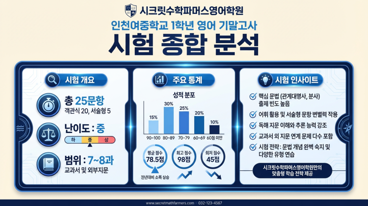 송도6공구·8공구 수학학원 펜타국영수, 2025학년도 2학기 2회고사 시험결과 공개