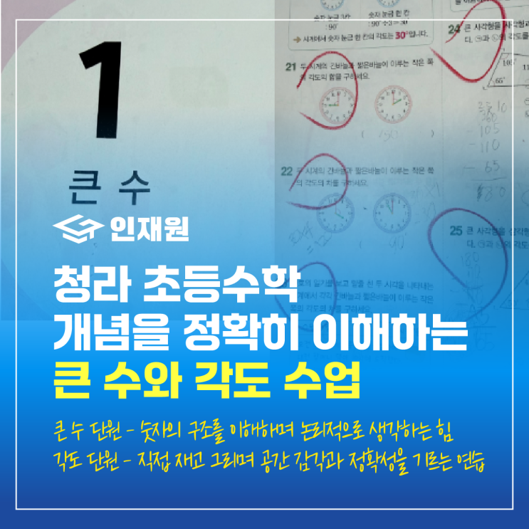 청라 초등수학 인재원학원 - 개념을 정확히 이해하는 수업 '큰 수와 각도'