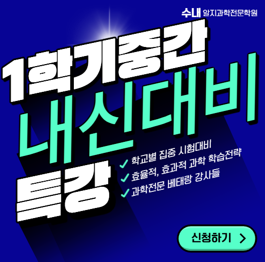 #중간고사 #알지과학 #수내동과학 #내신특강 #시험대비 #과학시험 #과학전문 #분당과학 #학교별 #중간고사 2026 1학기 알지과학 중등부 중간고사 대비 시간표입니다 중2 내신대비 시간표 중3 내신대비 시간표 ▶ 시간표 관련 자세한 내용은 학원으로 문의주세요 알지과학 수내 중등부 T. 031-8039-6166 ※ 문자로 간단 신청도 가능합니다 010-5261-6166 예) 중3 백현 일7시 00중3 김00 신청 마감에 유의하시고 빠른 신청해주세요~~~ 학원번호 6049호 중등과학A 212000원/ 중등과학B 268000원/ 고등과학A 232000원/ 고등과학B 252000원/ 실험과학 100000원 모의평가 10000원 <img src="https://blogthumb.pstatic.net/MjAyNjAzMTRfMjA5/MDAxNzczNDc3OTcxNDgw.svLEVC4QOg7q1-H2X-sRn-pmeTHNg-ix4cfrBDORcqwg.ETTlp-1AFbC058fJxxIwNcQnclHtiJHhGll7A7IL8tYg.PNG/%3F%91%9C%EC%A7%3F.png?type=s3" />