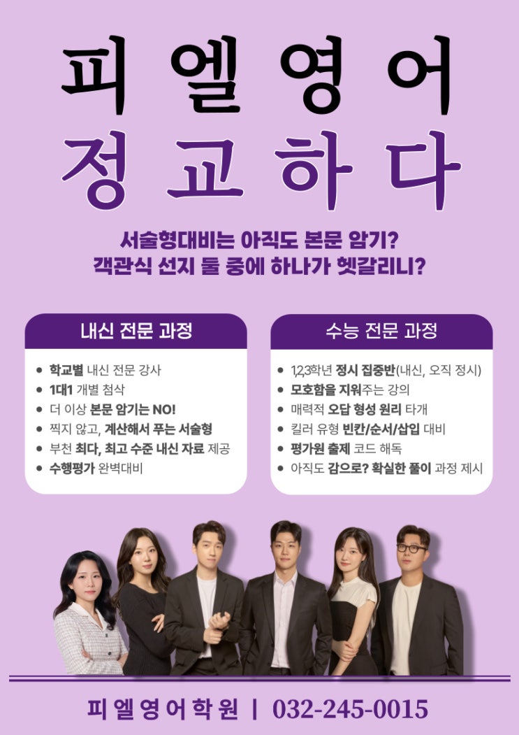 안녕하세요 여러분! 패턴과 논리로 꼼꼼하게 가르치는 피엘영어학원 입니다! :) 추위가 한껏 말썽을 피우는 겨울, 피엘영어학원은 겨울방학 특강으로 뜨겁게 새학기를 맞이하려 합니다. 오늘은 피엘영어학원의 2026년 겨울방학 특강에 대해 소개해드리고자 합니다! (전 재원생의 학생별 강사 추천도 포함되어 있으니 꼭! 끝까지 읽어주시면 감사하겠습니다♡) 그럼 바로 시작해볼까요?! 피엘영어학원은 패턴과 논리를 기반으로 정교한 가르침을 주고 있습니다. 또한 내신 집중반과 수능 집중반을 분리해 학생들이 더욱 꼼꼼한 강의를 들을 수 있습니다! 피엘영어학원의 강사 선생님들 보기만 해도 든든하지 않나요?! 고등부 대성T 예비고1, 2, 3학....... <img src="https://blogthumb.pstatic.net/MjAyNTEyMjdfMjY1/MDAxNzY2ODI1NTQ5MDk5.5ASq2853KYobgyJmIG6fDX9qiITD278UfaUo1Vkodesg.OYAtNG_gsbj3AQjCxRZlY4nmYVwQE9LRkWp_UGSRLi8g.JPEG/%C1%A6%B9%DF-%B0%C7%B5%E9%C1%F6-%B8%B6%BC%BC%BF%E4-%B4%A9%B1%B8%B5%E7-018_%282%29.jpg?type=s3" />