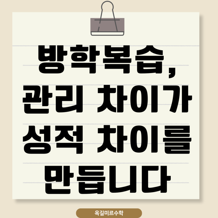 초등수학 복습, 방학에 놓치면 2학기에서 바로 드러납니다 방학이 시작되면 많은 학부모님들이 고민하십니다. "지금은 좀 쉬어도 되는 시기 아닐까?" 하지만 초등수학은 방학에 어떻게 관리했느냐가 2학기 성적을 그대로 결정합니다. 옥길동수학학원 딱풀리는수학은 방학을 '앞서 나가는 시간'이 아니라 1학기를 정리해서 흔들림을 없애는 시간으로 사용합니다. 이 차이가, 학기 중 계산 실수와 문제 이해력에서 분명하게 드러납니다. 초등수학에서 가장 먼저 무너지는 건 연산입니다 초등수학에서 연산은 단순 계산 문제가 아닙니다. 연산이 불안하면 문제를 읽는 속도가 느려지고 조건을 놓치고 아는 문제도 틀리기 시작합....... <img src="https://blogthumb.pstatic.net/MjAyNjAxMTBfMTc1/MDAxNzY4MDEwNzc5ODE0.Jsn4onrMON2aEwCIA0DdQCjImQtaUsowZLB1seLCsQIg.pNlNN47Rglr-lzgUfyYAGCpac4-rt6rGQtW7Qwn_fJ8g.PNG/%C3%CA%B5%EE%BF%AC%BB%EA%BA%B9%BD%C0.png?type=s3" />