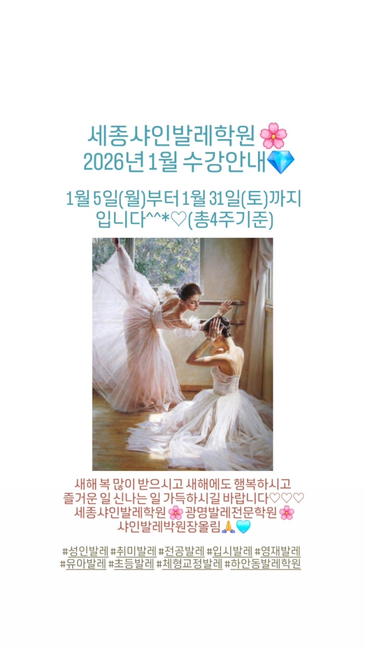 세종샤인발레학원 2026년 1월 수강안내입니다^^*♡새해 복 많이 받으세요❤️광명발레학원/하안동발레학원/발레전문교육기관