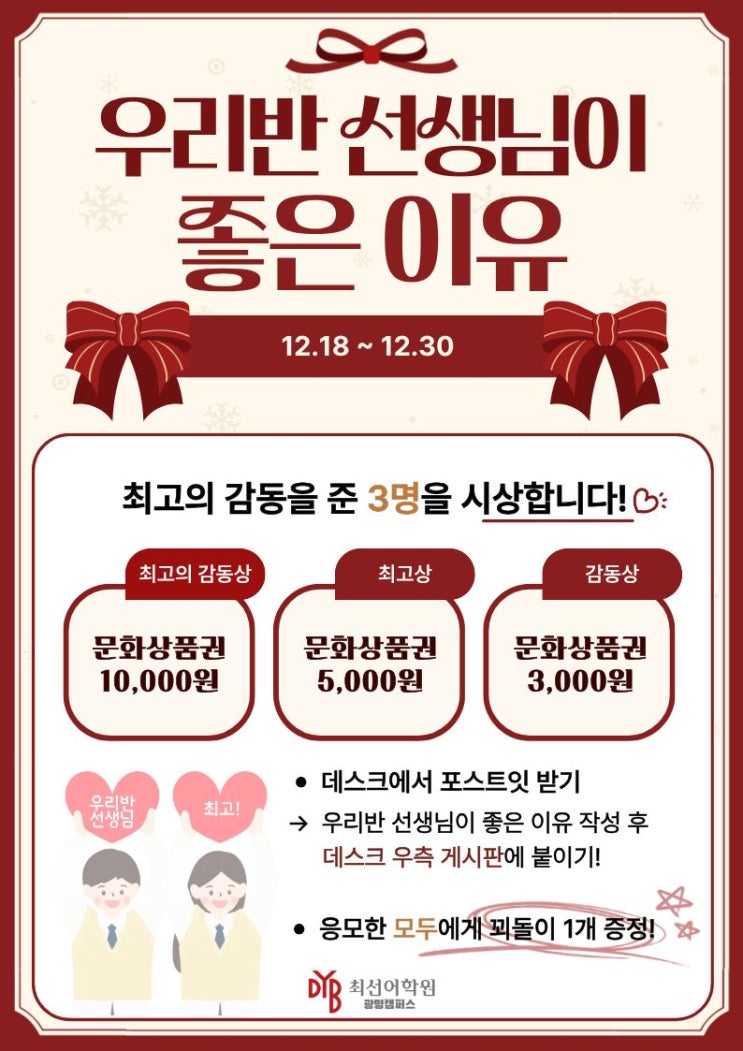 [DYB 최선어학원] 우리반 선생님이 좋은 이유 이벤트 수상자 발표