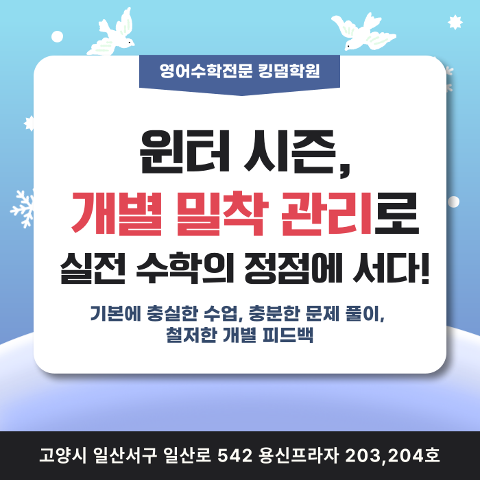 고양시일산동 겨울방학수학특강 개강 1월 5일 - 윈터 시즌, 개별 밀착 관리로 실전 수학의 정점에 서다.