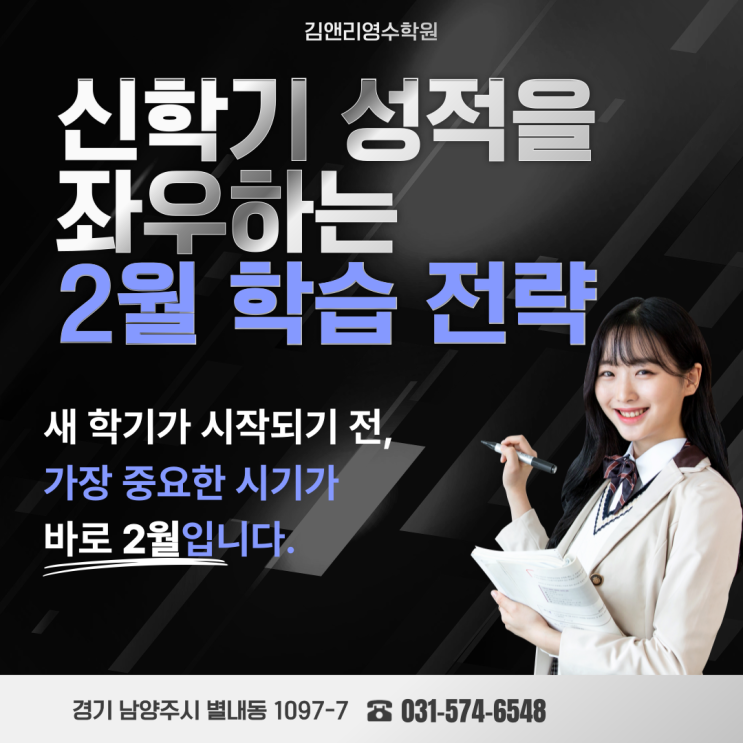 새 학기가 시작되기 전, 가장 중요한 시기가 바로 2월입니다. 이 시기를 어떻게 보내느냐에 따라 신학기 첫 시험 결과는 물론, 한 해 전체 성적의 흐름까지 달라질 수 있습니다. 겨울방학이 끝나갈 무렵인 2월은 단순히 문제를 많이 푸는 시기가 아니라 학습 구조를 점검하고, 부족한 부분을 채우는 시간이 되어야 합니다. 왜 2월이 중요한가요? ⏰ 신학기 시작과 동시에 학교 수업은 빠르게 진행됩니다. 특히 중·고등 과정에서는 첫 단원부터 난이도가 높아 기초가 부족한 상태로 시작하면 초반부터 성적이 흔들리기 쉽습니다. 반대로, 2월 동안 개념을 정리하고 다음 학기 내용을 미리 접한 학생들은 첫 시험에서 안정적인 결과를 만들 수 있습....... <img src="https://blogthumb.pstatic.net/MjAyNjAyMTNfMjI4/MDAxNzcwOTQ3Mzk4Mzk4.AFEqQTFY-_kTaamHNuix4Ouj2KeRZFrzRghycAuSHCcg._h5_p9nJ0xiXV8KrMESWdODSk12bUhEaobUYZFVcEuog.PNG/%BF%B9%C1%F8-1080-2-029.png?type=s3" />