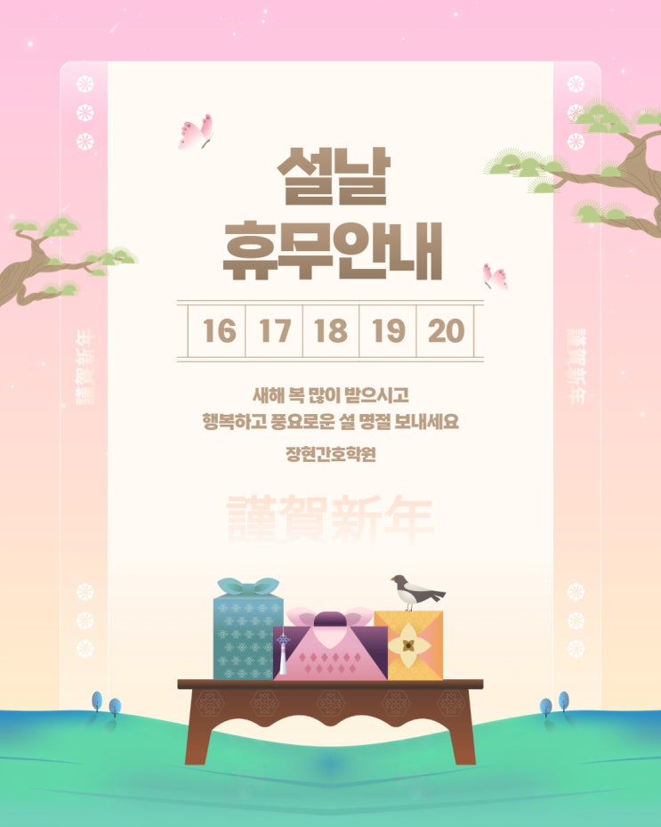 안녕하세요, 장현간호학원입니다. 다가오는 설연휴를 맞아 학원 운영 일정을 안내드립니다. ✅ 설연휴 방학 기간 2026년 2월 16일(월) ~ 2월 20일(금) 해당 기간 동안 학원은 방학(휴원) 입니다. ✅ 수업 및 상담 안내 방학 기간에는 정규 수업/대면 상담이 진행되지 않습니다. 다만 문의는 남겨주시면 확인 후 순차적으로 답변드리겠습니다. 상담/문의: 카카오채널/문자/전화 문의 가능(※ 답변은 순차 진행) ✅ 수강생 여러분께 드리는 한마디 설은 마음도 몸도 잠깐 숨 고르는 시간이에요. 연휴 동안 충분히 쉬고, 컨디션 잘 챙기셔서 연휴 이후 더 안정적으로 실습·수업 이어갈 수 있게 준비해 주세요. ✅ 연휴 후 정상 운영 안내 2월 2....... <img src="https://blogthumb.pstatic.net/MjAyNjAyMTVfNzIg/MDAxNzcxMTI1MjgxMzUy.bqamU5T5ozptU2c35OBV7cpj8o7g_Q7uingsHIaBic0g.MtCCnGvy9GhPRTuRSz7ZkF0gNvFC1B0f5gXpMtXkHEEg.JPEG/%C1%A6%B8%F1%C0%BB_%C0%D4%B7%C2%C7%CF%BC%BC%BF%E4_%2816%29.jpg?type=s3" />