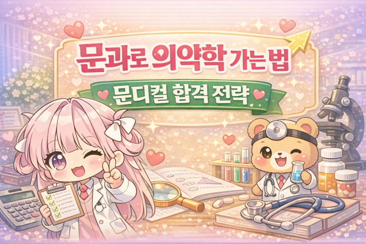 다산동 새봄가우스학원입니다. 인문계 최상위권 의약학 계열 전략 최근 전문직 선호 현상이 강해지면서 인문계 상위권 학생들 사이에서 ‘문디컬(문과 기반 의약학 계열 진학)’ 지원이 꾸준히 증가하고 있습니다. 그러나 구조적으로 보면 정시에서는 이과생 대비 불리한 위치에 놓이기 쉽기 때문에, 문과생이 의약학 계열을 목표로 할 경우 수시 중심 전략이 더욱 중요합니다. 정시보다 수시가 현실적인 이유 문과생이 의약학 계열을 정시로 노릴 경우, 미적분·과탐 기반 이과생과 동일 선상에서 경쟁해야 합니다. 이는 수능 점수 구조상 격차를 단기간에 극복하기 어렵다는 점에서 상당한 부담이 됩니다. 따라서 문디컬을 목표로 한다면 내신과....... <img src="https://blogthumb.pstatic.net/MjAyNjAyMjZfMTc3/MDAxNzcyMDk0ODYyMjE2.Zu4RxnIRFnvjew_137_udxHSm9qLHW-HC3Nn9OBJIIwg.tfxX5jk-IdgLlu1nchrxtJlOaEDortDg1rnRViiOPpEg.PNG/ChatGPT_Image_2026%B3%E2_2%BF%F9_26%C0%CF_%BF%C0%C8%C4_05_34_06.png?type=s3" />