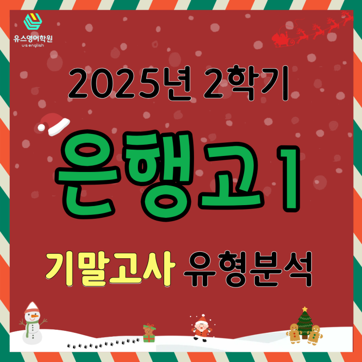 안녕하세요! 유스영어학원 입니다. 2025년 2학기 은행고1 기말고사 유형 분석을 공유하겠습니다. PART 1. 총평 이번 은행고 1학년 2학기 기말고사 영어 시험은 전체적인 난이도 측면에서 중간고사와 유사하거나 다소 쉬운 수준으로 출제되었습니다. 문항 구성 자체는 사고력을 요구하는 은행고 특유의 스타일을 유지했으나, 일부 문항이 한글 보기 형태로 제시되면서 학생들의 체감 난이도는 실제 난이도보다 더 낮게 느껴졌을 가능성이 있습니다. 특히 눈에 띄는 점은 배점과 난이도의 불균형입니다. 상대적으로 배점이 높은 문항 중 일부는 정답 접근이 비교적 쉬웠던 반면, 오히려 낮은 배점 문항에서 사고력을 요구하는 까다로운 선택지가 배....... <img src="https://blogthumb.pstatic.net/MjAyNjAxMDlfNjUg/MDAxNzY3OTQ2NDEwMDY5.WYN4Jh56A33EW45wExsuNz9Pj3tcMfaQID57CFwYDusg.p61EkYlLIaQwFOFwIABJ6Ri0DOpRwfJZ_hY2BErz0yYg.PNG/1.png?type=s3" />