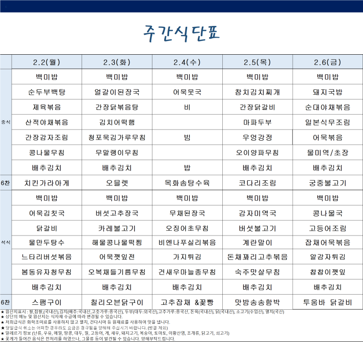 주말 및 공휴일은 급식업체 휴무로 급식 미제공인 점 미리 안내드립니다. 위 식단은 업체 수급 사정에 따라 변동될 수 있습니다. 맛과 영양소 모두를 지키는 ★급식 신청은 아래 링크를 통해 신청부탁드립니다!★ 2월 ↓↓↓↓↓↓ ★급식 신청 방법★ ↓↓↓↓↓↓ 더 궁금하신 사항이 있으시다면 ☎️ 031) 656-1545 언제든 문의주시길 바랍니다! 감사합니다❤️ <img src="https://blogthumb.pstatic.net/MjAyNjAyMDJfMTQ5/MDAxNzcwMDA1ODMxNjY5.J1KJpUE3eoIWKUT_X9kKfsJwNhLJdeoCST3_fUZm8ukg.6hLXkBbwQzF4km8Q-sFbeo0_odlo-5QZgFATGWb6TzQg.PNG/KakaoTalk_20260201_213431709.png?type=s3" />