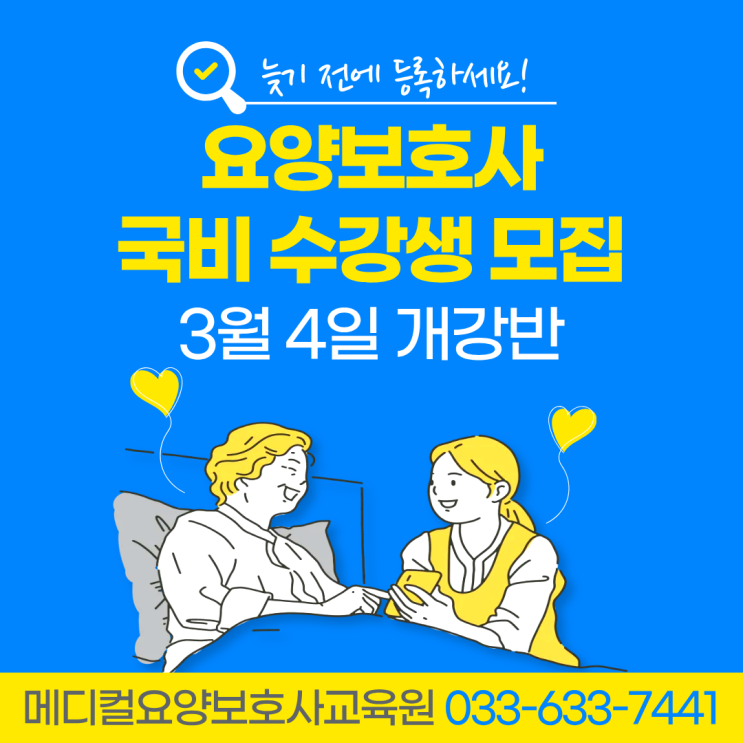 [속초요양보호사교육원] ★3월 4일 개강반★ 메디컬 요양보호사 자격증취득과정 지금 접수 중입니다. 서두르세요~