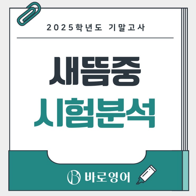 새뜸중 2학년 시험분석 새뜸중 영어 총평 전체적인 문제 난이도는 어렵진 않았으나, 기초적인 문법부터 심화적인 문법을 모두 다루는 본문 내용과 어법 문제로 체감상 어렵게 느껴졌을 수 있음. 꾸준하고 반복적인 문법 학습이 이루어져야 풀 수 있는 어법 문제들로 구성이 되어 있기 때문에 앞서 배웠던 문법 지식을 계속해서 가지고 나아가야 할 필요성이 보인 시험이었음. 또한, 본문 속 지문이 기존의 내신 지문에 비해 문장이 길고 타임라인이 복잡했기 때문에 독해력이 필요로 한 시험이었으며, 독해 공부도 꾸준히 지속된 아이들은 내용 이해가 용이 했을 것이지만, 독해와 내용 요약 스킬이 어려운 아이들에게는 본문 이해가 어려워 내용....... <img src="https://blogthumb.pstatic.net/MjAyNTEyMDFfMjAw/MDAxNzY0NTg1MzUxMTM4.Uif_hrnBXK9E6Hbt-VD19RNDELFBAgZMj9Ld1Z_BD4Eg.S_6hiRyqZ60tiV3gsdkTLYlq1HPPO2tBsajkBBFHslwg.JPEG/3.jpg?type=s3" />