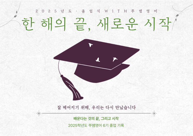 반갑습니다. 여러분의 우리들의 쭈쌤입니다:) 지난주말, 수업 마무리를 서둘러 끝내고 2025학년도 졸업생들과 함께 저녁 자리를 가졌습니다. 화려한 행사는 아니었지만, 그동안 함께 쌓아온 시간만큼은 가볍게 넘길 수 없는 자리였습니다. Ch1. 졸업은 끝이 아니라, 정리입니다 중학교 3년, 혹은 그보다 더 긴 시간을 함께한 학생들입니다. 시험이 끝나고, 과정이 마무리되는 시점이 되면 늘 같은 질문을 하게 됩니다. 이 아이들이 지금 무엇을 가지고 다음 단계로 가는가” 졸업은 떠남이 아니라 지금까지의 학습을 정리하는 과정 이라고 생각합니다. 그래서 이번 자리는 잘했다는 말보다, 앞으로를 어떻게 가져가야 할지를 차분히 정리하는 시....... <img src="https://blogthumb.pstatic.net/MjAyNjAxMDZfMTg4/MDAxNzY3NjI5MTA1ODYx.Y_bmL6eVlRWtFoVHQp0ZTESOHU1AnjsZ3t-75ewTEhYg.W3O0_CfU5Iaipe1SmNv0MgeIpm6jdS0FmbO4IaLjaEAg.PNG/%C1%A6%B8%F1%C0%BB_%C0%D4%B7%C2%C7%D8%C1%D6%BC%BC%BF%E4_%281%29.png?type=s3" />