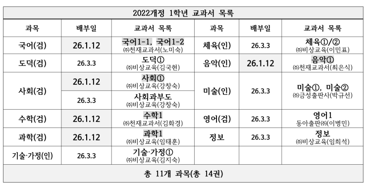 고창중학교 1학년 필독! 개정 교과서 배부일과 분실 시 구입 방법 안내