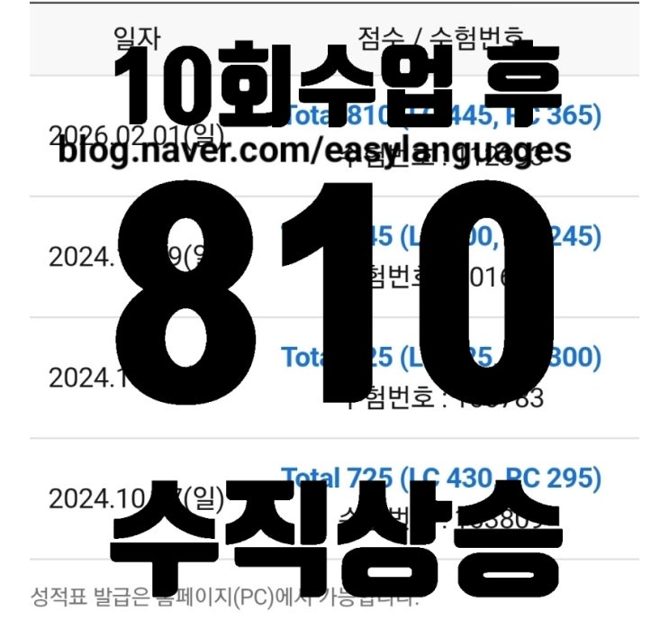 [김포토익 후기] 과학고 학생, 단 10회 수업 만에 600점대 → 810점 수직 상승! 운양동 토익학원