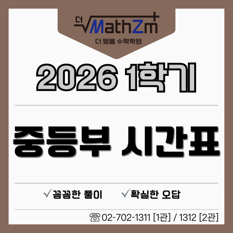 2026년 1학기 중등부 개강 안내 및 시간표 (꼼꼼한 풀이, 확실한 오답)