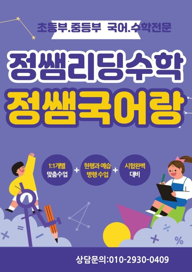 초등부. 중등부 국어+수학 종합반 모집합니다.
