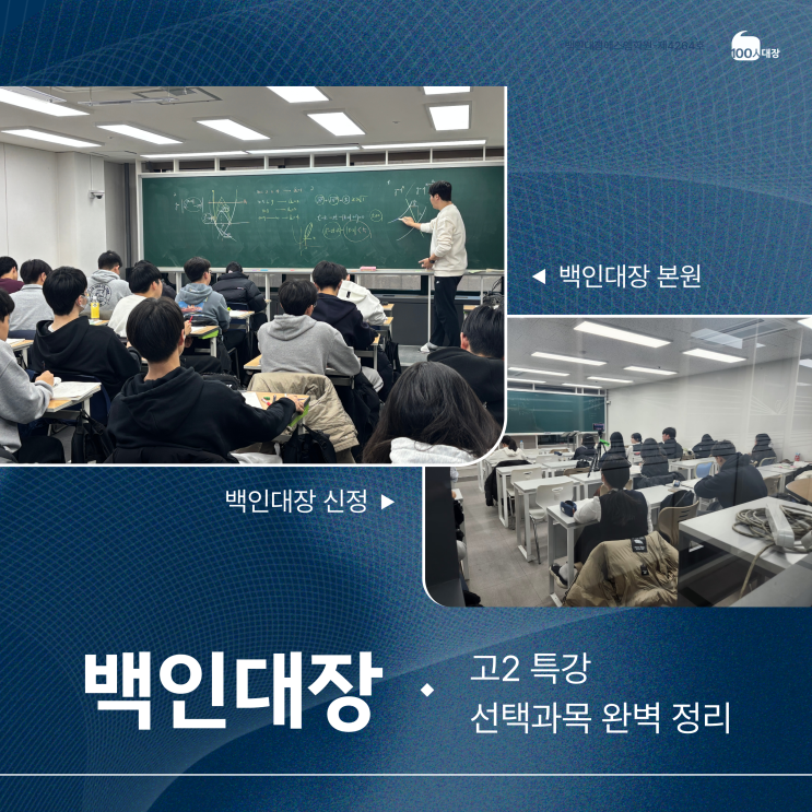 안녕하세요, 백인대장 수학학원입니다. 고2 수학은 학습량이 폭발적으로 늘어나는 시기입니다. 일반 선택 과목인 대수, 미적분 1은 물론이고, 학교별 커리큘럼에 따라 기하, 확률과 통계, 미적분 2까지 동시에 병행해야 하기도 합니다. 이 시기를 어떻게 보내느냐가 결국 입시의 승패를 결정짓게 됩니다. 백인대장은 목동 지역 학교들의 출제 경향을 완벽히 분석하여, 학생들이 이번 학기, 그리고 그 이후에도 확실한 우위를 점할 수 있도록 고2 내신 및 실력 완성 특강을 준비했습니다. 백인대장 본원·신정과 함께 최선을 다해 공부하여 최선의 성적을 받을 수 있도록 합시다! 백인대장 본원 고2 특강 안내 이번 특강은 과목별 특성과 학생들의....... <img src="https://blogthumb.pstatic.net/MjAyNjAyMjBfMTMw/MDAxNzcxNTk4NTk4NDky._nUzZ2b79CxYDYzLDPr-q5gRSiL1keLirbFqRihArEIg.z356psczO6d8Kphb08HkwCC5PglIU8M7jMXJtB9Mi8og.PNG/20%28%B1%DD%29_%BA%ED%B7%CE%B1%D71.png?type=s3" />
