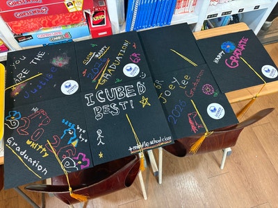 2월 7일 토요일 저녁, 아이큐브영어학원에서는 아주 특별한 졸업식이 열렸습니다. 이번에 졸업한 학생들은아이큐브에서 5년, 6년이라는 긴 시간을 함께한 6학년 학생들입니다. 영어 실력만 쌓은 시간이 아니었습니다. 책을 읽으며 생각이 깊어졌고, 글을 쓰며 표현이 단단해졌고, 어려운 순간에도 포기하지 않는 힘을 배웠습니다. 졸업식은 아이들의 개성이 가득 담긴 학사모 꾸미기로 시작되었습니다. 각자의 색깔이 담긴 학사모처럼, 아이들은 모두 다른 모습으로 성장해 있었습니다. 빠른 결과보다 ‘지속적인 성장’을 선택해 주신 부모님, 그리고 묵묵히 자리를 지켜준 아이들 덕분에 이날의 의미는 더욱 깊었습니다. Good afternoon, every....... <img src="https://blogthumb.pstatic.net/MjAyNjAyMTlfMjY2/MDAxNzcxNDkzMTExMjI3.P1MpHnMp_6ifbfMgSm7VN4d_1E1QbSTAbEa7q36e46Eg.f0L1Azxh6UqmePcdsM3cjSuHYF6vavwAsN55eNsCdDMg.JPEG/KakaoTalk_20260219_174801274.jpg?type=s3" />