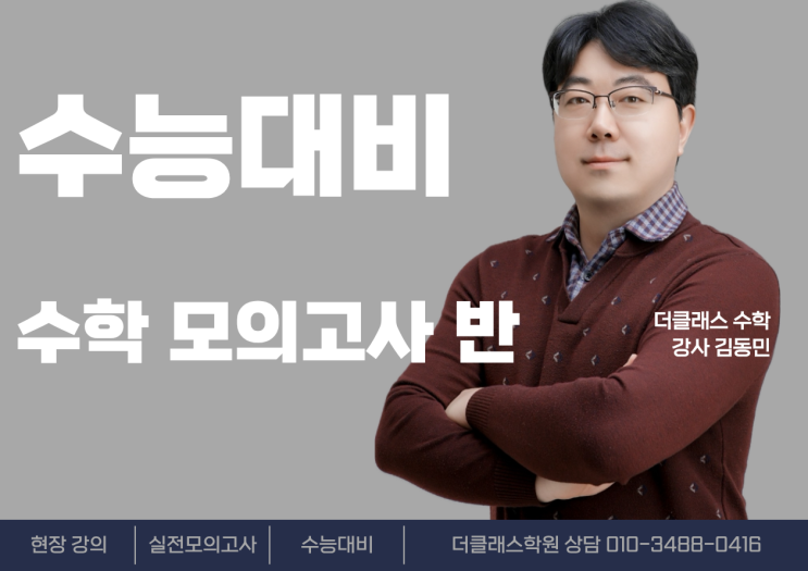 [초전동 수학학원] 3/7(토) 수능 수학 모의고사반 개강 (수Ⅰ·Ⅱ/확통/미적) 실력의 변화가 없는 공부는 노동일 뿐입니다. 초전동 더클래스학원에서 2027학년도 수능 대비를 위한 효율적인 커리큘럼을 제안합니다. 왜 '더클래스'의 수능 반인가? 1. 분석적이고 과학적인 커리큘럼 단순 암기나 양치기식 풀이를 배제합니다. 수능 출제 원리를 논리적으로 해부하여, 어떤 변형 문제와 고난도 신유형이 나와도 스스로 해법을 도출할 수 있는 **'수학적 사고의 알고리즘'**을 확립합니다. 2. 압도적인 시간 효율과 경제성 회비: 월 30만 원 평일 스케줄에 지친 수험생들을 위해, 토요일 하루에 수능의 정수를 모두 쏟아붓는....... <img src="https://blogthumb.pstatic.net/MjAyNjAxMThfMTc1/MDAxNzY4NzIxNTE0MDE3.A4-XPZMu2t-2ZVbSBWAJhilURkIt0jJzi5UoLFStFUMg.vobpKtAokTj0uWEGlvcigOJLz5e1Rpatk6OHduNUY0og.PNG/%C1%A6%B8%F1%C0%BB_%C0%D4%B7%C2%C7%D8%C1%D6%BC%BC%BF%E4..png?type=s3" />