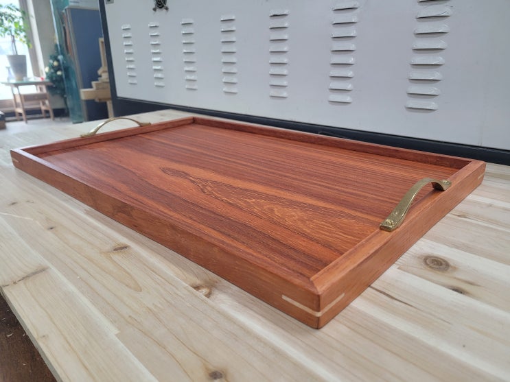 학원에서 수업이 진행되던 중, 한 학생이 선택한 재료는 붉은 색감이 매력적인 파덕(Padauk)이었습니다. 이번 작업은 단순한 트레이 제작이었지만, 한 가지 차별점이 있었습니다. 바로 모서리를 연귀맞춤으로 구성한 작업이라는 점입니다. 트레이 작업의 시작은 기본적인 재단입니다. 파덕은 밀도가 높고 단단한 목재이기 때문에, 단순히 자르는 것처럼 보이지만 정확도가 무엇보다 중요합니다. 특히 이번 작업에서는 연귀맞춤을 적용해야 했기 때문에, 각도를 정확히 45도로 맞추는 것이 핵심이었습니다. 각도가 조금만 틀어져도 네 면이 맞물리지 않기 때문에, 학생도 이 과정에서 가장 많은 집중을 보였습니다. 이후 진행된 것은 연귀맞춤 결....... <img src="https://blogthumb.pstatic.net/MjAyNjA0MDFfMTAz/MDAxNzc1MDIzNjEzMTkw.5at-2dlpNa3mxsWfpJfjLHwNyYV5BortpE3CiocBWawg.tHIlbkoBSL989Fp7MG40Jd3JWaJGihHrXl0v7N9cnSgg.JPEG/KakaoTalk_20260401_150430641.jpg?type=s3" />
