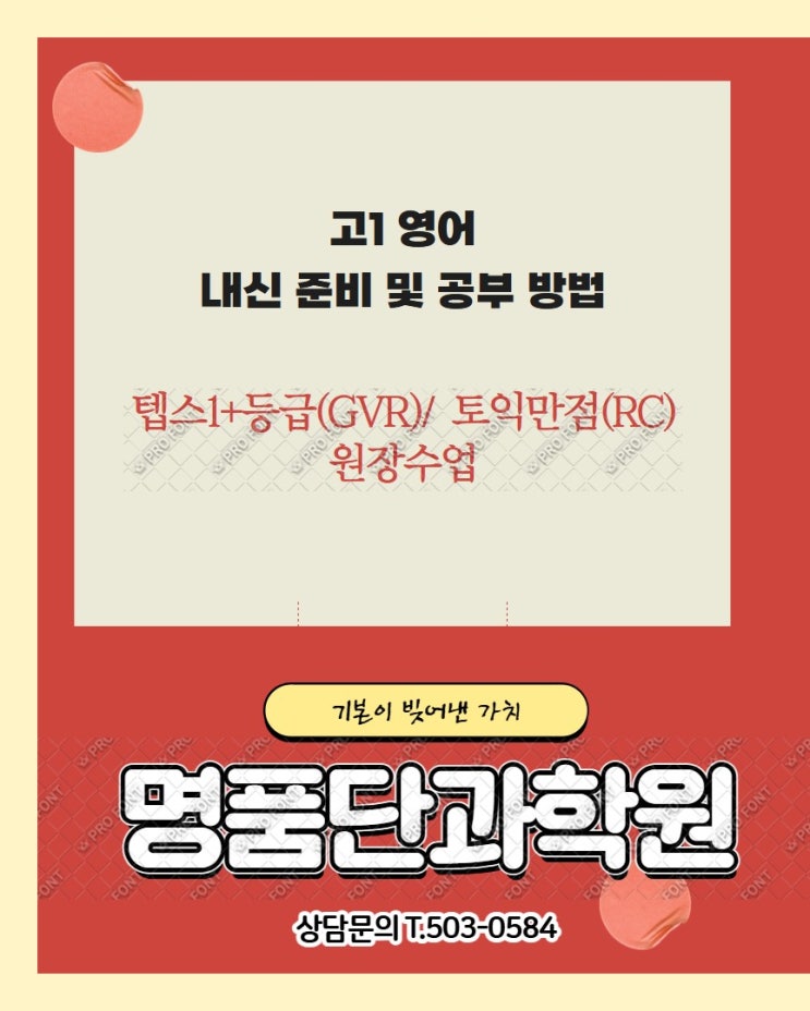 고1 영어의 특징은 모의고사가 주를 이루고 교과서, 부교재[세일고] 순으로 출제됩니다. 중학교 내신에서는 단순 암기와 문장 구조 파악만으로도 성정을 올릴 수 있었지만 고등학교 내신은 문장 안의 구조, 주어와 동사 관계, 연결사와 문맥의 흐름까지 이해해야 합니다. 고1 영어 내신은 모의고사와 교과서 그리고 부교재[세일고] 까지 포함되어 시험범위가 광범위하고 준비할 내용이 상당히 많다는 것이 특징입니다. 교과서는 기본 점수를 확보하는 구간이며, 부교재와 모의고사는 난도가 높아 변별력을 기르는 역할을 해 꼼꼼하게 확인하고 분석하는 수업이 중요합니다. 중학교 내신처럼 시험 2주 전 벼락치기로는 감당할 수 없는 시험이므로....... <img src="https://blogthumb.pstatic.net/MjAyNjA0MDNfMjE5/MDAxNzc1MjA2MzI4NDY3.VkZt-SVURj57vK3wBeQjB2UxiB5U3kzyu_83JTVN7_Qg.yASfFyQhcCHO2tWYCHloElxkkngNfzwvI-f8JDBEMtUg.JPEG/%BF%B5%BE%EE%B3%BB%BD%C5.jpg?type=s3" />
