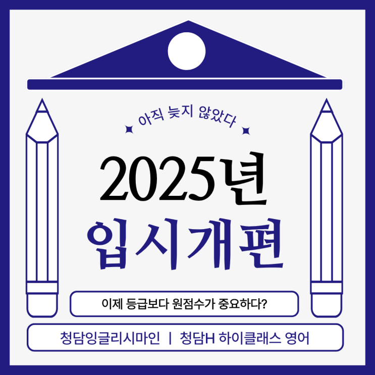 안녕하세요, 중랑구 신내동 입시학원 영어 청담잉글리시마인/청담H 하이클래스 원장입니다 우리 학생들과 학부모님들 최근 입시 제도가 개편된다는 소식에 다들 걱정이 많으시죠? 25년도부터 고등학교 들어가면 뭐가 달라진다고 하는데 그게 뭐에요? 학교에서 얘기는 들었는데 정확하게는 모르겠어요 저희 학원에서도 이렇게 물어보시는 분들이 많아 2025학년부터 적용되는 변화를 핵심만 콕 짚어드릴게요! 만약 이 글을 다 읽고 나면 지금 우리가 집중해야되는 것은 무엇인지 그 해답을 찾으실 수 있을 거라 생각이 듭니다 그럼 지금부터 시작하겠습니다 Q. 2025년 생기부, 무엇이 달라지나요? 1. 9등급제가 아닌 '5등급제'의 도입 결....... <img src="https://blogthumb.pstatic.net/MjAyNjAxMTBfMjc3/MDAxNzY4MDE5OTY4MzIz.fPK9LoO_zBDeIfTV-wdSdGSaFIal1PgRv41Hv3P8ClQg.9wgscpJL6r0VfvgKq9R6A1SQpQOaks7r56vDvycePX8g.PNG/%C1%A6%B8%F1%C0%BB_%C0%D4%B7%C2%C7%D8%C1%D6%BC%BC%BF%E4_%288%29.png?type=s3" />