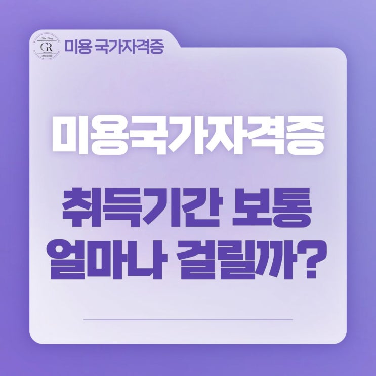 안녕하세요. 그릿뷰티아카데미입니다. 오늘은 미용 국가자격증을 준비하려는 분들이 가장 먼저, 그리고 많이 궁금해하시는 질문입니다. "보통 얼마나 걸리나요? 몇 개월 과정인가요? 그 과정이 끝나면 시험을 바로 보는건가요?" 사실 이러한 질문에 제대로 된 답변을 명확히 드릴 수가 없습니다. 단순한 '개월 수'보다 더 중요한 전제가 있기 때문이죠. 각 학원마다 과목마다 정해진 개월수가 있습니다. 그 개월수대로 등록하신다고 그 기간 안에 다 합격하는게 아니란 것이죠. Q. 평균적으로 미용자격증 취득에 얼마나 걸릴까? A. 보통 3~6개월이라고 많이 이야기합니다. 하지만 이건 모든 조건이 맞을 때의 평균입니다. - ....... <img src="https://blogthumb.pstatic.net/MjAyNjAxMTRfNTUg/MDAxNzY4Mzc1MjMxMDQ1.b4gCvYeNV33DfRHlLVHnPhZebyH-b1sy-ZWUpnD0Wpsg.JDT0ql-bn7Eo78a6JmkvfqGy1RJp0xOS9VymSjv-M8Mg.JPEG/%B9%CC%BF%EB%B1%B9%B0%A1%C0%DA%B0%DD%C1%F5_%C3%EB%B5%E6%B1%E2%B0%A3.jpg?type=s3" />