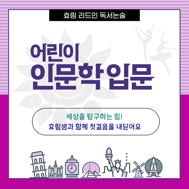 안녕하세요. 역사인문 배경지식을 바탕으로 독서와 글쓰기를 지도하는 [리드인 효림 독서논술] 입니다. (수원 영통 황곡초 앞|舊 리드인 청명점 ) 꼬마 인문학자가 되어볼까요? 세상을 탐구하는 힘! 효림샘과 그 첫걸음을 내딛어 봅시다. 어린이 인문학 입문 수업은 하나의 주제를 다양한 활동을 통해 탐색하고 배우고 표현하는 "세상을 탐구하는 힘"’을 기르는 수업입니다. 수업 개요 >> 대상 : 초등 4학년 (2026학년 기준) 기간 : '26년 3월 ~ 12월 (10개월) 시간 : 주 1회 60분 - A반 : 목 3시 / B반 : 금 2시 매년 3월부터 12월까지 10개월간 수업을 진행하며, 같은 수업 내용으로 2개의 쌍둥이 반을 운영하여 결석시....... <img src="https://blogthumb.pstatic.net/MjAyNTExMjdfMTI3/MDAxNzY0MjI4NTE2ODQ5.uIjjHn4M6cnAqh0LTsdijClsZkGVFZfpsgAjxMjtDBEg.LsL6b6sxdVp64QDqmt2nRClWsaRwydqmbQYZM6B-wiYg.PNG/001.png?type=s3" />