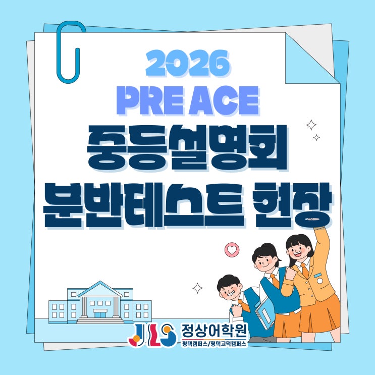 평택정상어학원에서는 초등학교 6학년 학생들을 대상으로 예비중등(PRE ACE) 과정 진급을 위한 분반테스트를 실시했습니다. 또한 예비중등으로 진급을 앞둔 학부모님들께 정상어학원의 중등 커리큘럼을 소개하는 설명회도 함께 진행되었습니다. 평소에 장난이 많던 학생들의 다소 긴장하고 진지한 표정에서도 어엿한 예비중등의 마음가짐을 엿볼수 있었습니다. 겨울 추위가 한창이고 1차, 2차 모두 주말에 나와 테스트를 해야 하는 시간이었지만 새학년을 준비해야하는 마음가짐으로 모두 성실히 테스트에 임해주었습니다. 학부모님들 역시 변화되는 교육과정에 대해 많은 고민과 궁금하신 점들을 안고 진지하게 설명회에 참석해주셨습니다. 이번....... <img src="https://blogthumb.pstatic.net/MjAyNjAxMjRfMjEz/MDAxNzY5MjUyMTQ0MDg2.iUggtvcf7LyGD5x_6ZbvmfCV_CIADA6YmHWkGj4OYf8g.qJwij6jcO2Kuq1Z_NqnYR6ByAOdnKn1N1pKqfepcbvgg.JPEG/%C1%A4%BB%F3%BE%EE%C7%D0%BF%F8_%BC%B3%B8%ED%C8%B8%C7%F6%C0%E5.jpg?type=s3" />