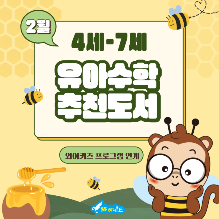 우리 아이 영재성 계발에서 초등수학 대비까지 우리 아이의 첫 수학 생각 키우기, 와이키즈와 함께하세요. 새 학기를 앞둔 2월, 4~7세 우리 아이들은 숫자와 모양을 알아가며 세상을 새롭게 이해하기 시작합니다. 이 시기 아이들은 ‘왜 그럴까?’ ‘어떻게 될까?’ 같은 질문을 끝없이 던지며 세상을 탐험하죠. 이런 아이들에게 지금 필요한 건 이야기 속에서 흥미롭게 만나보는 와이키즈 유아수학 프로그램과 연계하면 효과가 2배! 2월의 유아수학추천도서를 소개합니다. 6세수학 추천도서 (와이키즈 파워TSM과정) 키키네 수학 유치원5 / 비룡소 즐거운 꼬치 축제가 열린 봉봉 마녀 성에 놀러 간 친구들! 하지만 생각지도 못한 함정에 빠지고 마....... <img src="https://blogthumb.pstatic.net/MjAyNjAyMTFfMjMg/MDAxNzcwNzk0MzI1MjU1.jDIxJfcHvzMRJW-8gBI_zx4pGQlJCSjRhQ4Xs_CKNHUg.kIwijgA9PORjFUkXPNjXi7S5Bv1JvqMbTpf4lHJe8q0g.PNG/1.png?type=s3" />