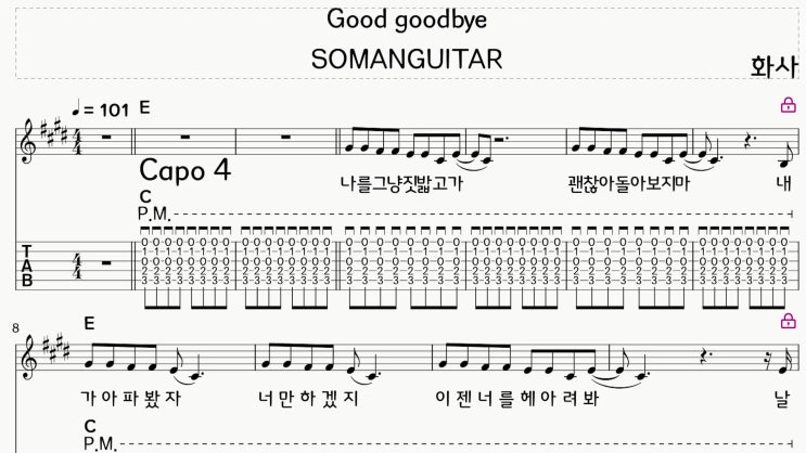 [E Key] 화사 - Good goodbye 악보 행신동 실용음악학원 소만마을 기타교습소