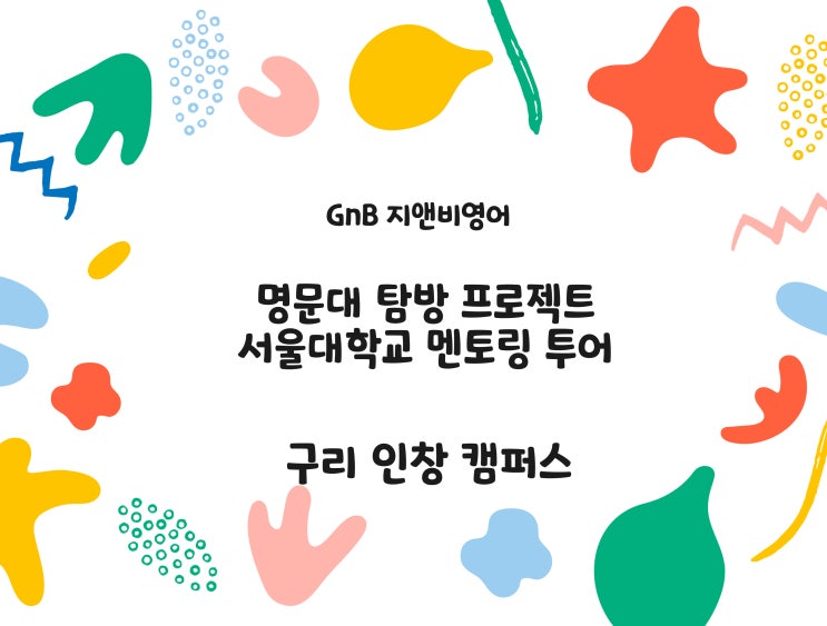 서울대학교 선배와 함께한 특별한 하루 지앤비영어 인창캠퍼스 학생들의 서울대학교 탐방 후기! 지난 3월21일 토요일, 지앤비영어 인창캠퍼스 학생들과 함께 서울대학교 탐방 및 진료 멘토링 프로그램을 다녀왔습니다. 이번 프로그램은 단순한 캠퍼스 견학이 아니라, 서울대학교 선배들과 직접 만나 이야기를 나누고 아이들 스스로 자신의 꿈과 학습 방향을 생각해보는 아주 뜻깊은 시간이였습니다. 아침 일찍 학원에 모여 출발한 우리 아이들은 설렘과 기대를 안고 서울대학교로 향했습니다. 평소 이름으로만 듣고 서울대학교 캠퍼스를 직접 걸어보고, 실제 대학생 선배들과 함께 시간을 보내며 아이들의 눈빛도 점점 더 반짝이기 시작했습니다....... <img src="https://blogthumb.pstatic.net/MjAyNjAzMjZfOTQg/MDAxNzc0NDk1NzUyNTU2.vSGOg0rPa6rh5skFhu4Lo_t3Fh9u01Q_9IoRd9jPugog.fo9aRU1hFAl03YukMhs5vWN53DW02ZZNhfxee-BZsqQg.JPEG/001.jpg?type=s3" />