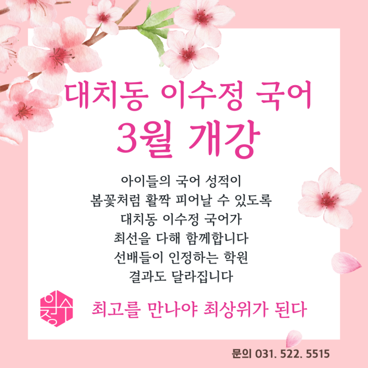 이수정 국어 `3월 개강` 아이들의 성적 꽃이 활짝 피어납니다~
