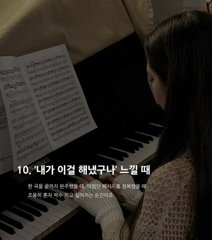 내가 원하는 곡 한 곡, 제대로 완성해요 취미로 피아노를 배우는 분들께 가장 중요한 건 부담 없이 꾸준히, 그리고 확실한 성취감을 느끼는 것이라고 생각해요. 저희 취미반 수업은 교재 진도보다 내가 원하는 곡 한 곡을 완성하는 것을 목표로 진행됩니다. 1️⃣ 목표가 분명해서 꾸준해요 “체르니 몇 번까지”가 아니라 이 곡을 끝까지 연주해 보자는 분명한 목표가 생기기 때문에 연습 방향이 명확해지고 꾸준함이 달라져요. 2️⃣ 내가 좋아하는 곡이라 더 재미있어요 영화 OST, 가요, 팝송, 찬양곡 등 직접 고른 곡으로 수업을 진행해요. 좋아하는 음악으로 배우니 연습 시간이 부담이 아닌 하루 중 즐거운 힐링 시간이 됩니다. 3️⃣ 개인....... <img src="https://blogthumb.pstatic.net/MjAyNjAxMjhfMjg1/MDAxNzY5NTc2Njg4NTAy.-uQ1VW0IkRSW6LFAoms7uNJNodbtLBHRB0u2mAw6GoIg.xe64W92kFpY9MhzaXiSB2gQQOqw8cxNJ7C28KJVrh-wg.JPEG/KakaoTalk_20260128_140403525.jpg?type=s3" />