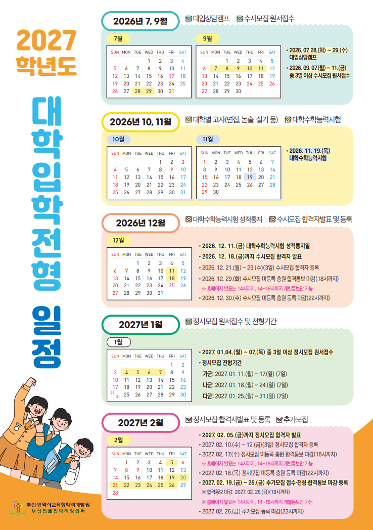[부산 학군지] 2027학년도 대학입학전형 일정(정시, 수시) : 부산진로진학지원센터