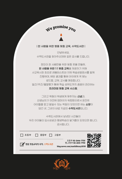 안녕하세요, 아이들의 MBTI까지 고려하는 진짜 맞춤 교육- 시스템이 있는 1:1 맞춤 수학! 수학도서관입니다. 저희 수학도서관에 보내주시는 믿음과 격려에 마음 깊이 감사드리며, 2026 기준 수강료 관련 내용을 안내드립니다^^ 수강료 교육청 기준 수학도서관 (초/중/고등관) 교습비용 수학카세관 (초/중등 전문관) 교습비용 (*분 당 기준*) 초등/ 186, 182, 181, 184.5, 185 중등/ 185, 187, 200, 198, 고등/ 202, 204, 208 수학도서관 초/중/고등관 강사게시표 교습비 반환기준표 [학원등록 제5433호] 학원이 학생에게 맞추다 - 목동 명품 맞춤교육의 시작! 수학도서관이었습니다 궁금한 점이 있으시다면 언제든 문의주세요 :) [ 목동 본원 ] 서....... <img src="https://blogthumb.pstatic.net/MjAyNjAzMTNfNiAg/MDAxNzczNDA4MDI3NDcz.hmtMyPrHBGzr-gknVDo4EMiiKxrJI0N8eMbZLGhDYVEg.ZzNa-aschU6GvHJa4BvwVz7nZIhGd57MyEZPSAZNl40g.JPEG/%BC%F6%C7%D0%B5%B5%BC%AD%B0%FC-%B0%A8%BB%E7-%BF%B1%BC%AD-1-002.jpg?type=s3" />
