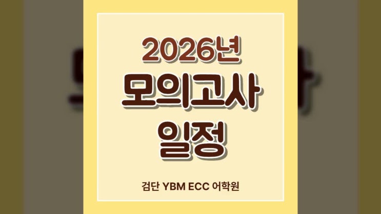 검단 영어학원 YBM ECC 어학원에서 2026년에 고등학생을 대상으로 시행되는 전국 모의고사 일정과 우리 학생들의 학교 내신과 수능에서 영어 성적 향상을 위한 고등부 프로그램을 안내해 드리도록 할게요. 2026년 모의고사 일정 1학년, 2학년 모의고사 일정 ▪ 3월 24일 (화) [주관 : 서울 교육청] ▪ 6월 4일 (목) [주관 : 부산 교육청] ▪ 9월 2일 (수) [주관 : 인천 교육청] ▪ 10월 20일 (화) [주관 : 경기도 교육청] 3학년 모의고사 일정 ▪ 3월 24일 (화) [주관 : 서울 교육청] ▪ 5월 7일 (목) [주관 : 경기도 교육청] ▪ 6월 4일 (목) - 수능 모의평가 [주관 : 한국교육과정평가원] ▪ 7월 8일 (수) [주관 : 인천 교육청] ▪ 9월 2일 (수....... <img src="https://phinf.pstatic.net/image.nmv/blog_2026_02_26_3439/T1PVdAtH69_01.jpg?type=f480x480" />