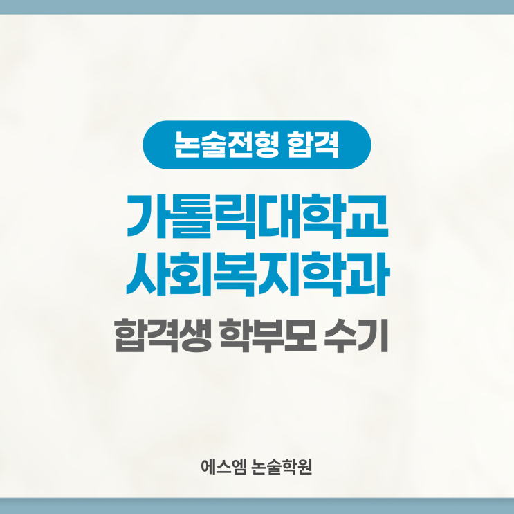 [대치동논술학원] 가톨릭대학교 사회복지학과 논술전형 합격생 학부모 수기