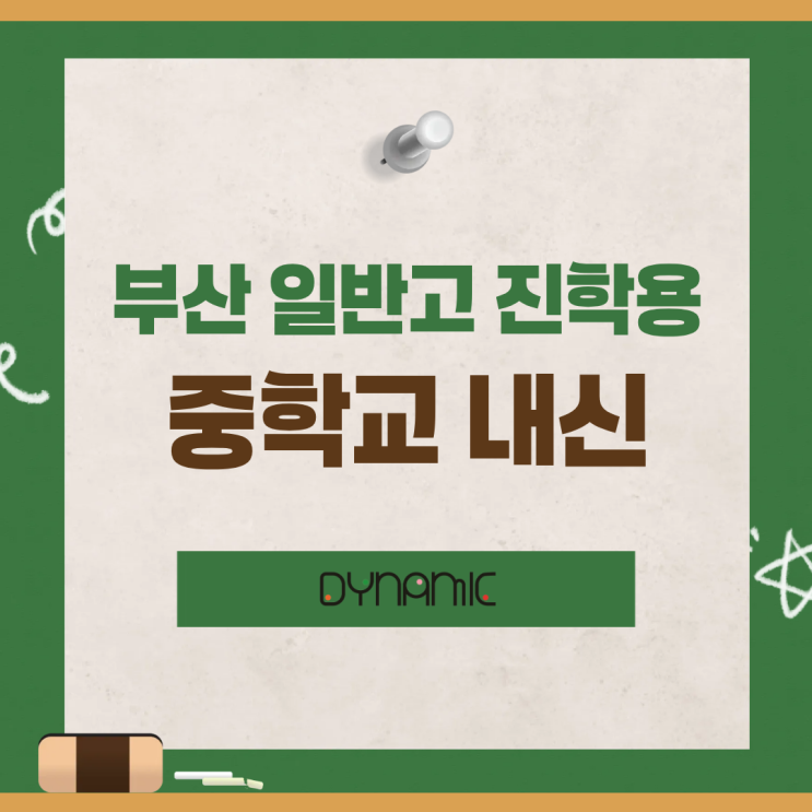 안녕하세요 다이나믹학원입니다 부산 기준 일반고 진학용 중학교 내신 계산 방식은 총점 300점 구조로 이루어져 있는데요 교과 성적이 큰 비율을 차지합니다 부산은 자유학기제 영향으로 중1 성적이 거의 반영되지 않습니다 학기 기준으로 본다면, 중3 성적 영향이 제일 큽니다 중학교 시험 점수는 A~E등급으 환산 점수로 변환하여 계산됩니다 각 과목의 점수를 평균 내어 240점 만점 교과 점수로 변환합니다 즉, 기본점수 40% & 실제 성적 60% 의 구조입니다 동아리와 자율활동은 큰 변별력은 거의 없습니다. 부산 고입은 "석차 백분율"로 줄 세워 일반고로 배정합니다 즉, 이러한 중학교 내신 석차가 그대로 고입 경쟁력이 됩....... <img src="https://blogthumb.pstatic.net/MjAyNjAzMDVfMTYz/MDAxNzcyNzEzMDkxMzUy.5RocENWP-4z1h8iwSPRZ62or56X-psxmQzNulk-VAtQg.66563QO4PvwXI8155uDKVoGh0RCsfQEmX4cfCToVNN0g.PNG/1.png?type=s3" />