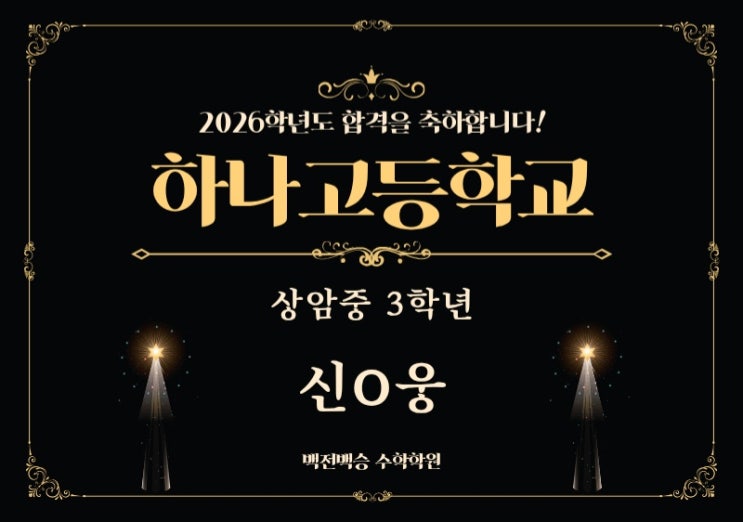 안녕하세요. 백전백승 수학학원입니다. 누구보다 뜨거웠던 우리 아이들의 노력이 '외고·자사고 합격'이라는 찬란한 결실로 돌아왔습니다. 어려운 수학 문제 앞에서도 포기하지 않고 묵묵히 꿈을 향해 달려온 여러분이 정말 대견하고 자랑스럽습니다. 이번 합격은 끝이 아닌 멋진 시작이기에, 새로운 세상에서 더 크게 비상할 여러분의 앞날을 진심으로 축하하고 응원합니다. 곁에서 든든한 버팀목이 되어주신 학부모님들께도 깊은 존경과 감사의 인사를 올립니다. <img src="https://blogthumb.pstatic.net/MjAyNjAxMjFfMjky/MDAxNzY4OTk1NjE2MTQ2.ltWTo0nU-K4DJXU1Uyo3IHl1xbj5vumN_VJHO1mxKuYg.-gTaL7mBjzp12EWicPpwE7YmGer9Vea4uhXWr38N35kg.JPEG/KakaoTalk_20260119_221053773.jpg?type=s3" />